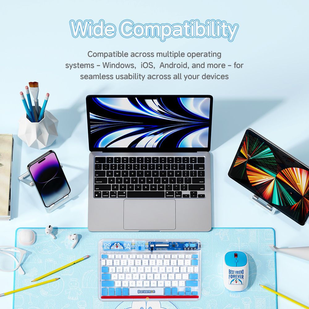 Combo Chuột + Bàn Phím Không Dây ROCK Doraemon Transpancy Set (2.4GHz + Bluetooth)