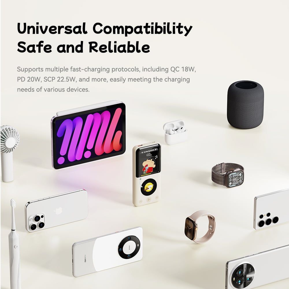Pin Dự Phòng ROCK Crayon Shinchan P65 10000mAh 22.5W (CCC / 3C Certification, with Built-in Cables, Smart Digital Display)