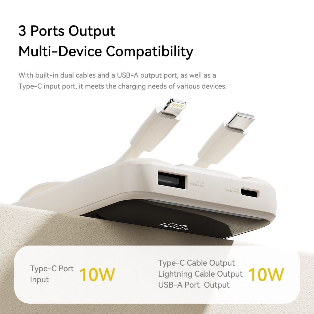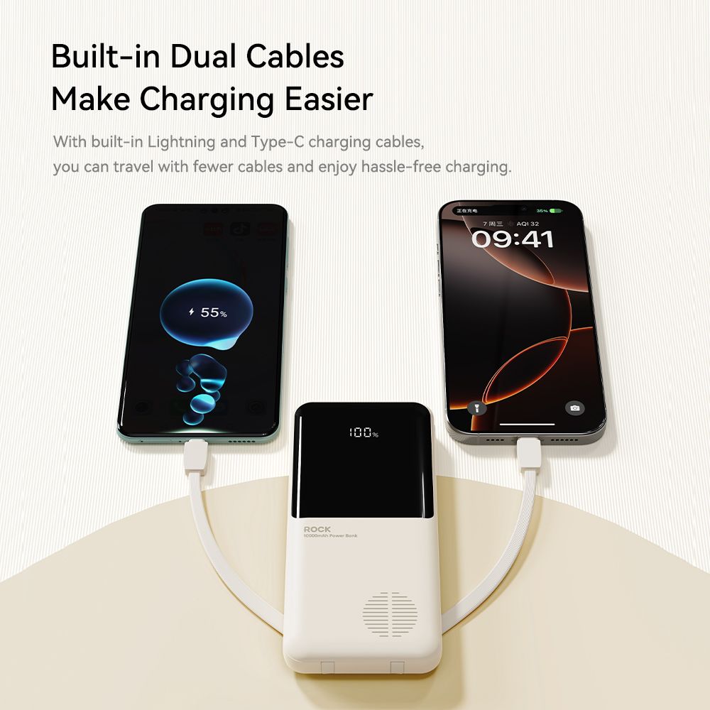 Product Name: ROCK P55 Power Bank with Built-in Cables 10000mAh