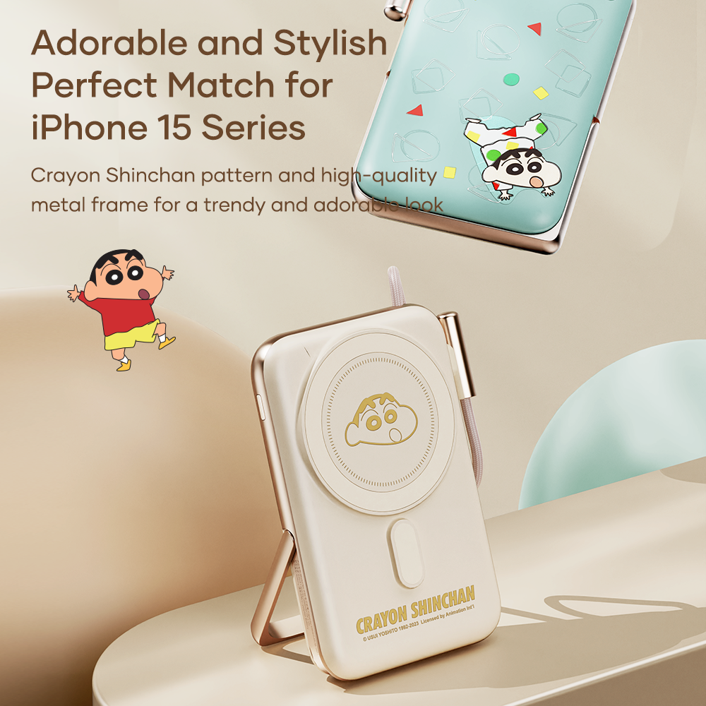 Pin Sạc Dự Phòng Không Dây ROCK Crayon Shinchan P20 Pro/P30 Pro Magnetic Holder Wireless (10000mAh, 20W/30W, Tích Hợp MagSafe, Crayon Shinchan Authentic Licensed)