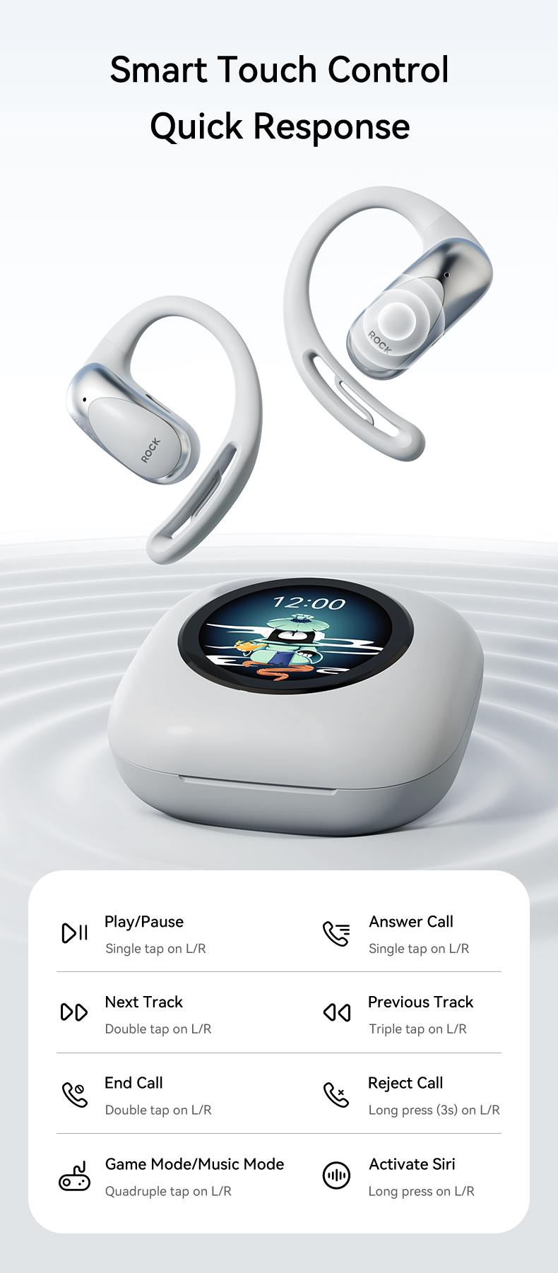 Product Name: ROCK X918 Smart Touch Screen OWS Bluetooth Earphones