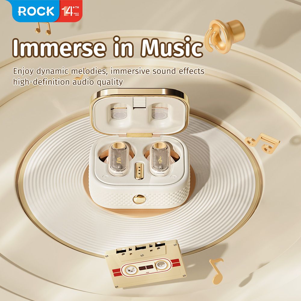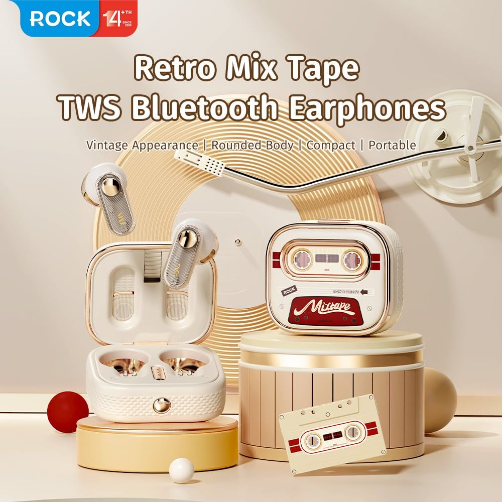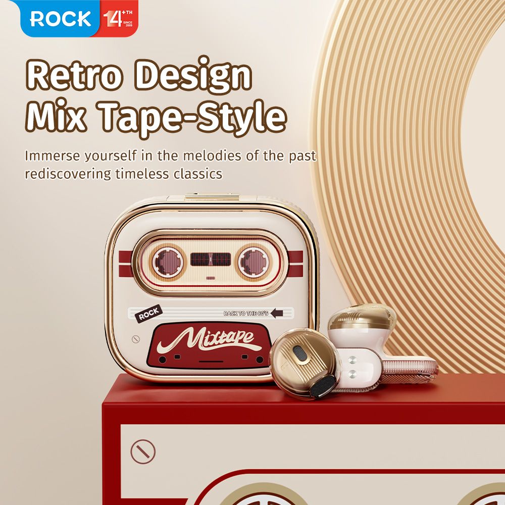 Tai Nghe Không Dây TWS ROCK Retro Mix Tape (Bluetooth v5.3, 6H, IPX4)